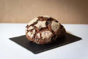 Unser typisches Roggenbrot aus Sauerteig, verfeinert mit getrockneten Aprikosen. Das dunkle Brot ist sehr kompakt und hat einen kräftigen Säuregeschmack. Das mikrobiologische Gleichgewicht und der hohe Säuregehalt verleihen ihm eine lange Haltbarkeit von bis zu 4 Wochen.