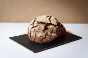 Unser typisches Roggenbrot aus Sauerteig, verfeinert mit Baumnüssen. Das dunkle Brot ist sehr kompakt und hat einen kräftigen Säuregeschmack. Das mikrobiologische Gleichgewicht und der hohe Säuregehalt verleihen ihm eine lange Haltbarkeit von bis zu 4 Wochen.