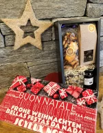 Noël avec des gourmandises du Simplon. Nos délices emballés avec soin dans notre beau "Truckulti" (petite boîte) de Noël.