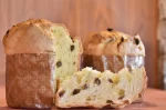 A Noël, la tradition veut que le panettone soit préparé avec de la pâte au levain de blé sucrée. Pour qu'il soit léger et tendre, il faut beaucoup d'habileté et de patience. La fabrication dure environ trois jours. Nous affinons le panettone de manière classique avec des raisins secs, des oranges et des citrons confits.